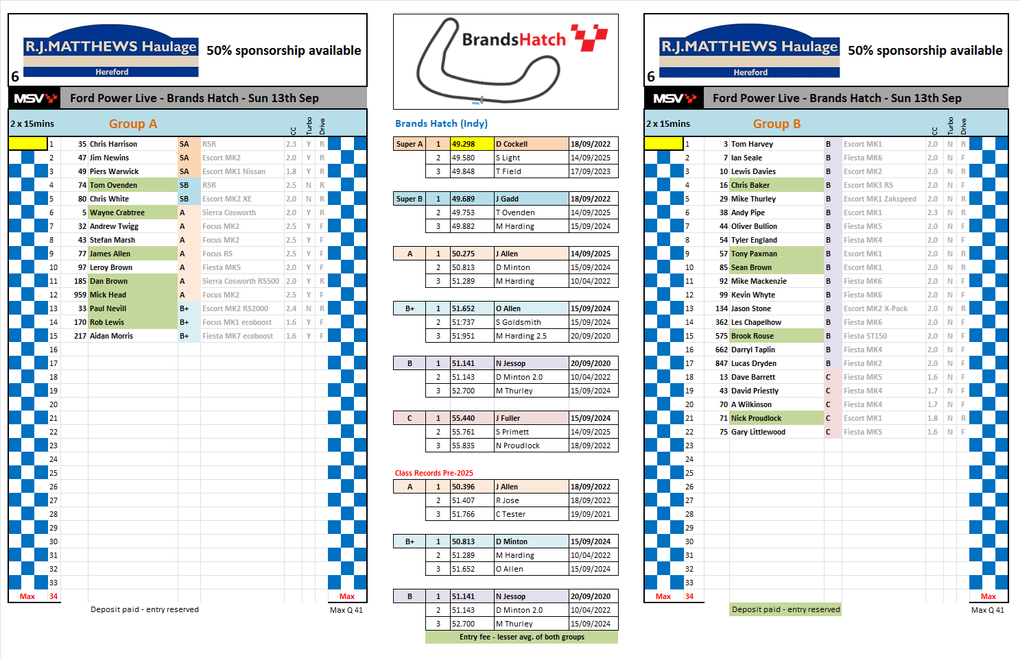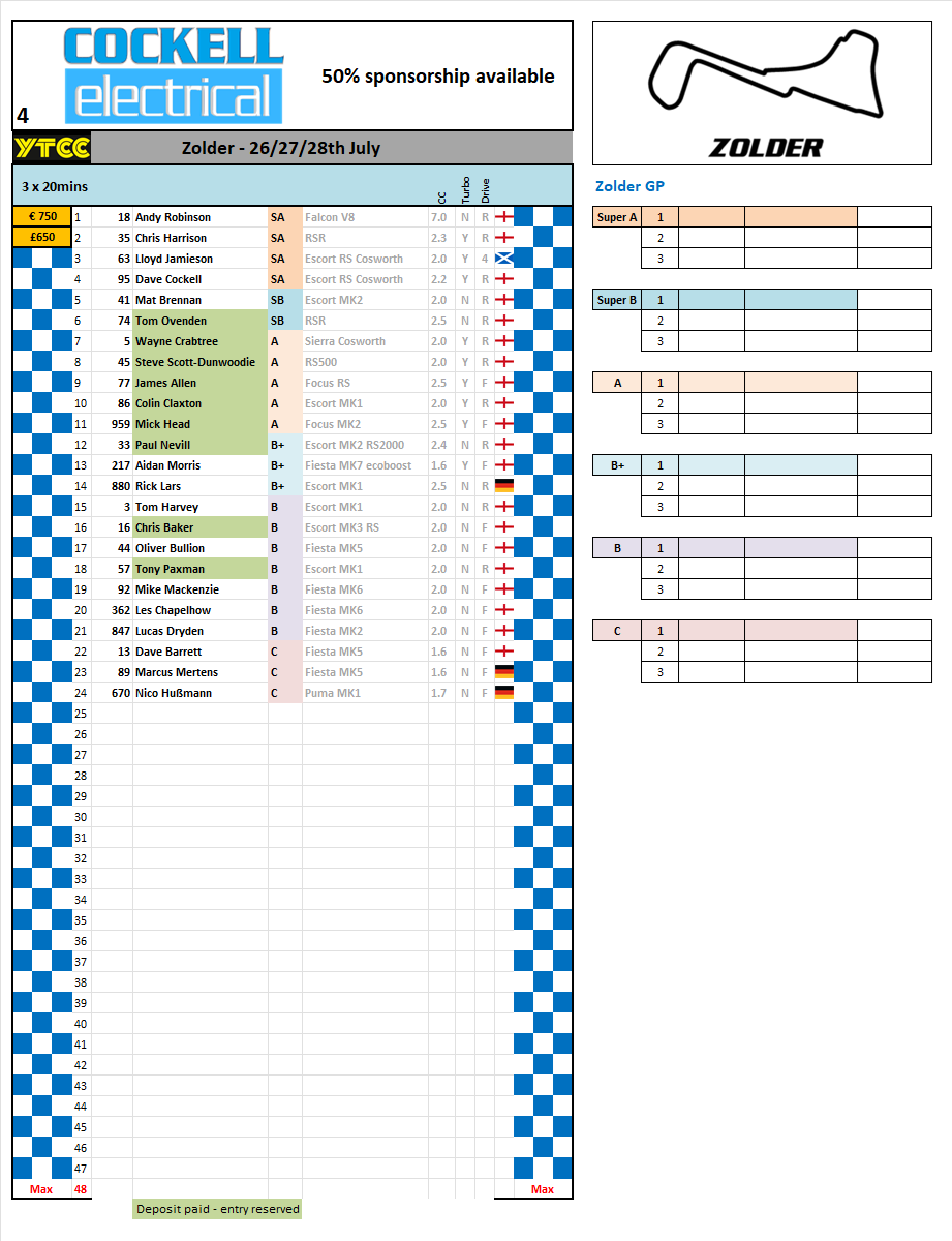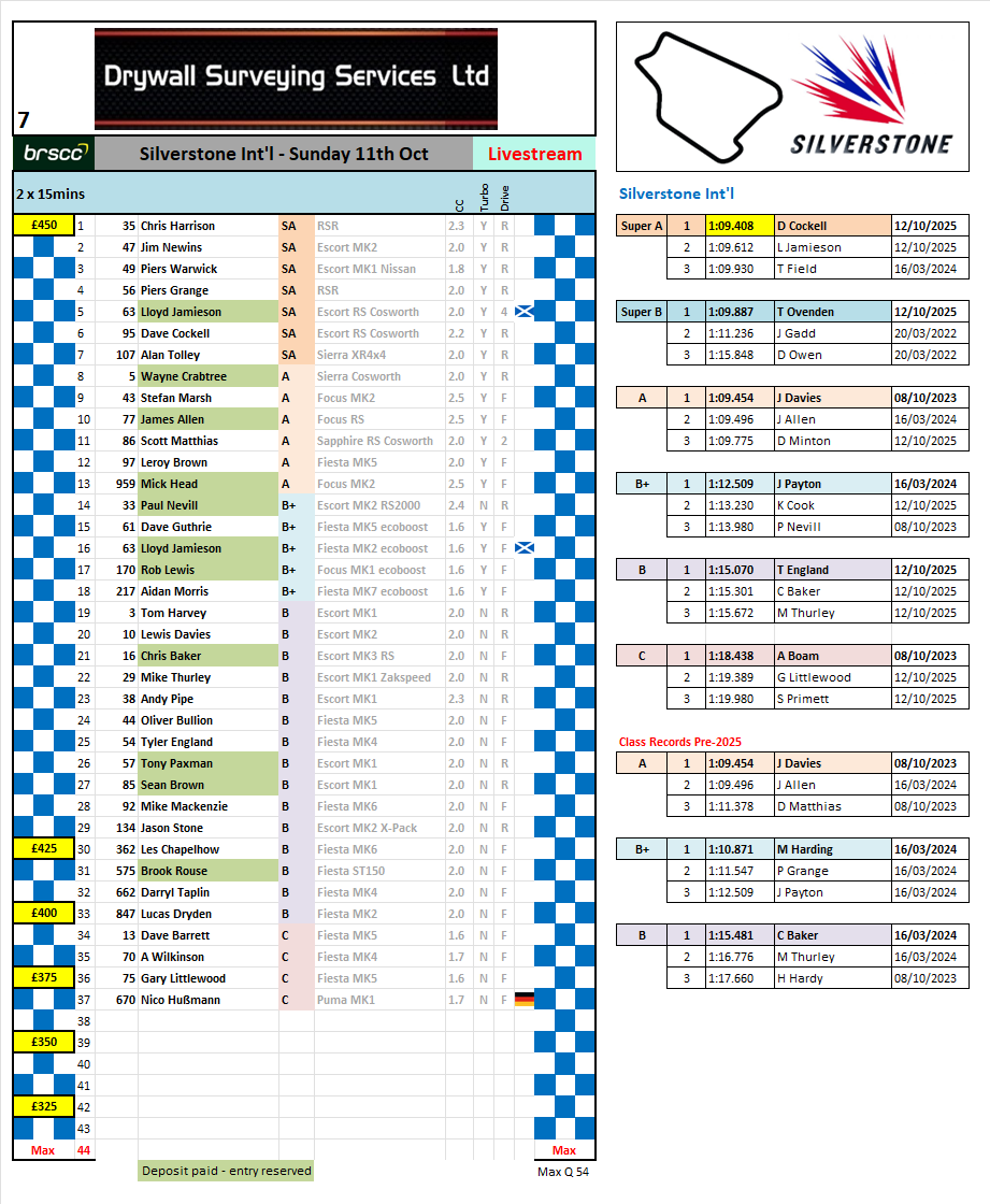 Your choice - An annual racing fee to cover all races is £80 or for a single event it’s £20.00 This is in place of up-front registration and allows drivers to dip in or out as they choose without hiking up the cost of a single entry.