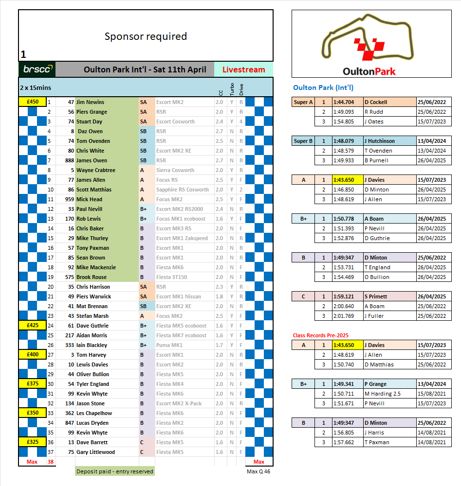 Full or half day testing on the Friday - LINK here…. 25 April Oulton Park