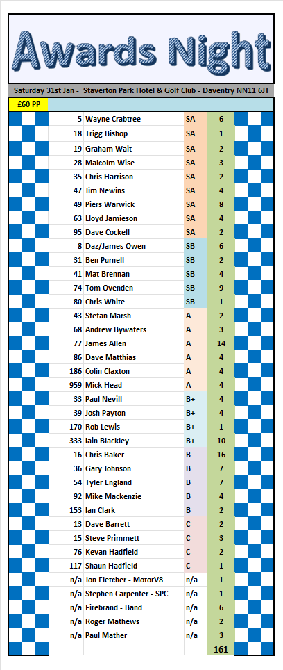2026 Awards Night at Staverton Park Hotel and Golf Club in NORTHAMPTON.